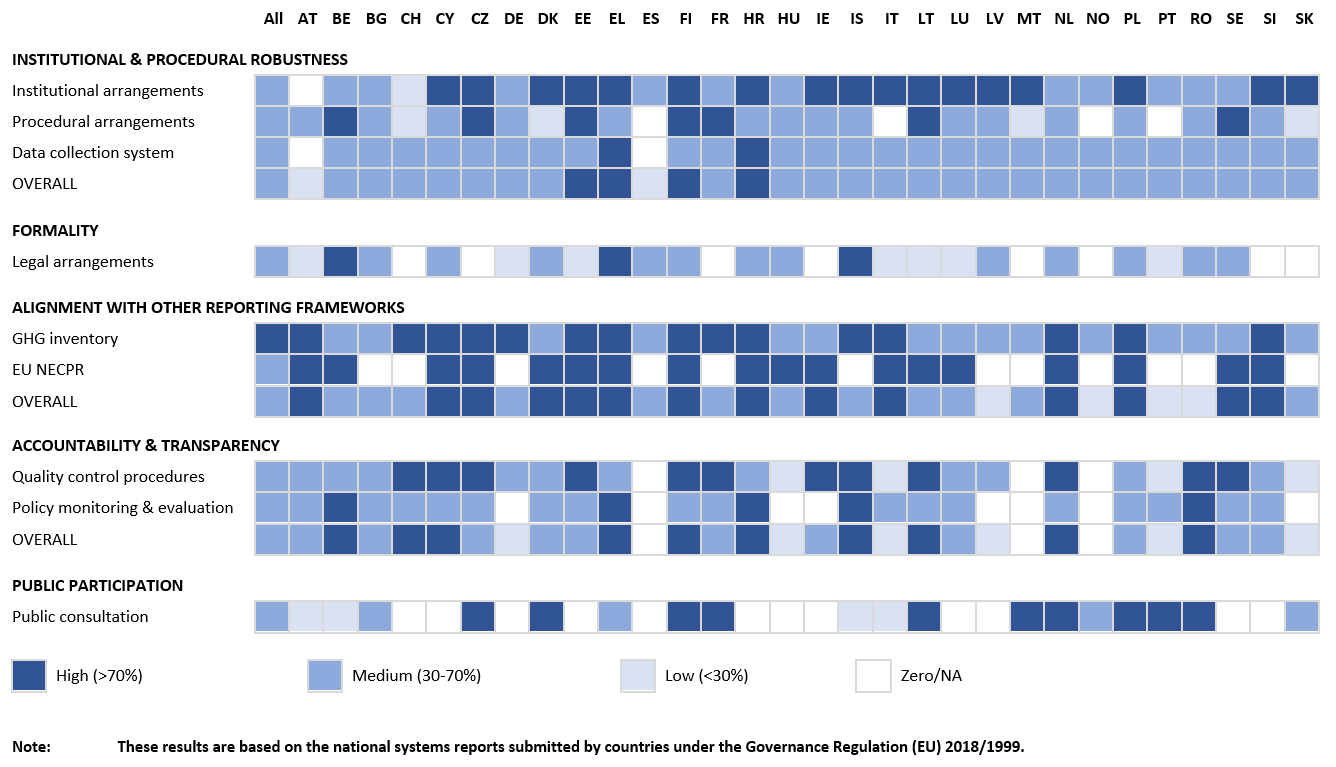 Note: assessment made based on data available in 2024. For a more detailed explanation please see ETC-CM report 2024/08: Strengthening National Governance Systems.